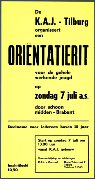 De collectie Beeld en geluid kunt u doorzoeken via de Catalogus van het KDC. Door te zoeken op ‘Katholieke Werkende Jongeren, Tilburg’ vindt u het bedoelde materiaal.