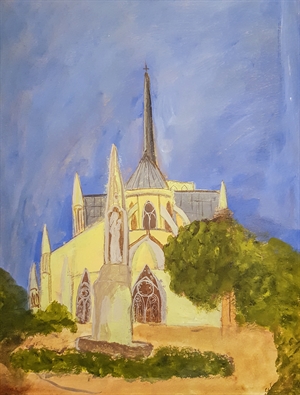 Op de foto: De kathedraal van Amiens, geschilderd door zoon Peter (toen 10 jaar oud).